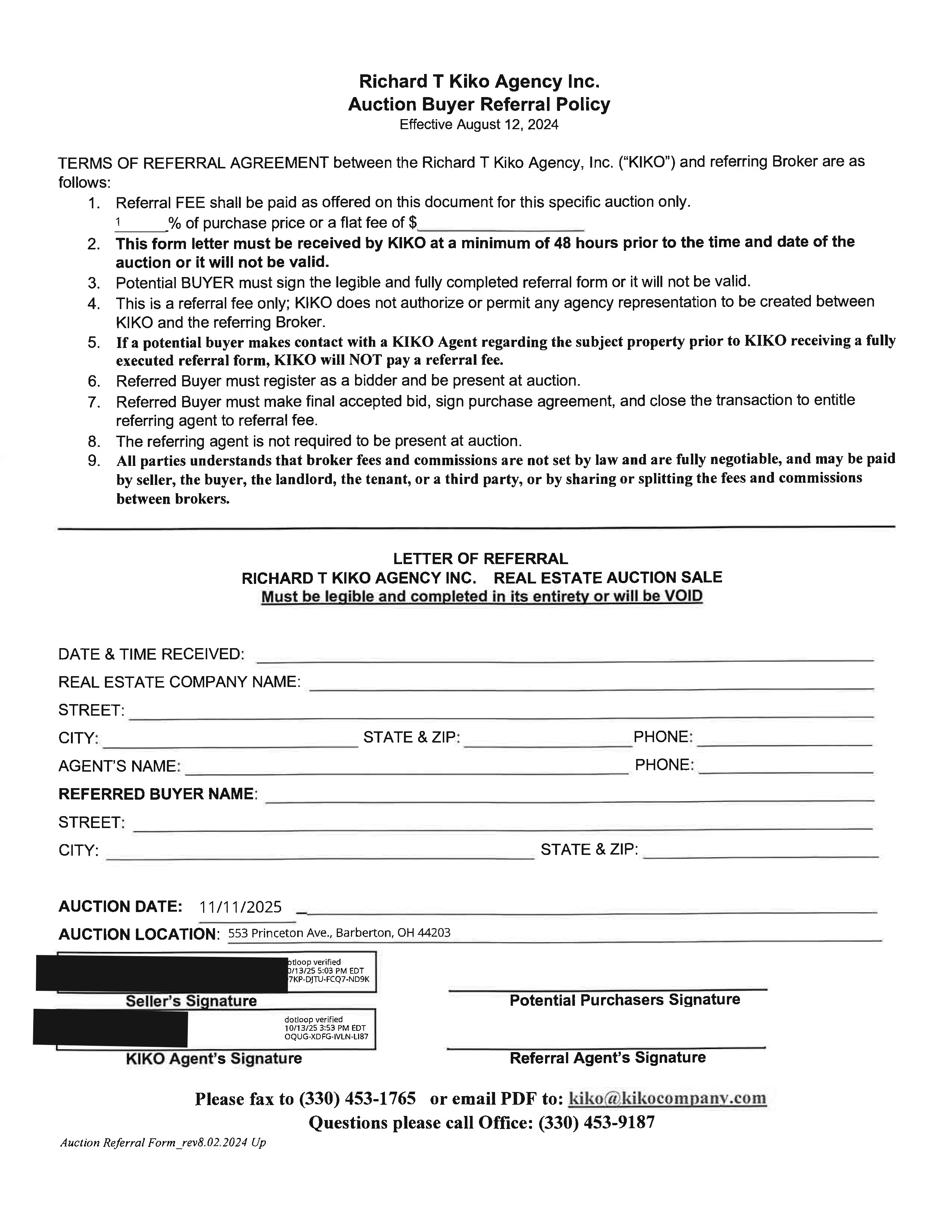 Tuesday, November 11, 2025 - 12:30 PM - Real Estate Sells at: 12:30 PM