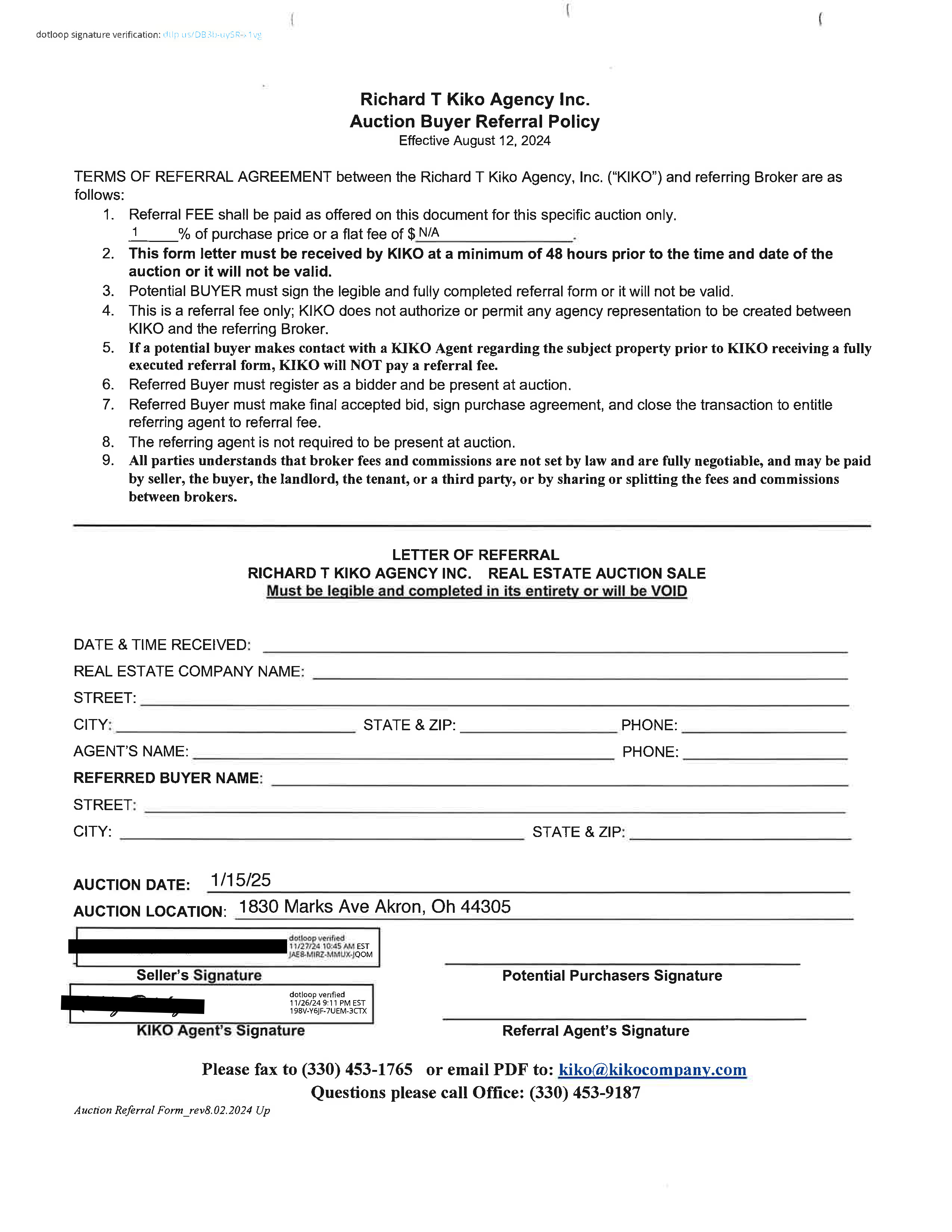 15% down auction day, balance due at closing. A 10% buyer’s premium will be added to the highest bid to establish the purchase price. Any desired inspections must be made prior to bidding. All information contained herein was derived from sources believed to be