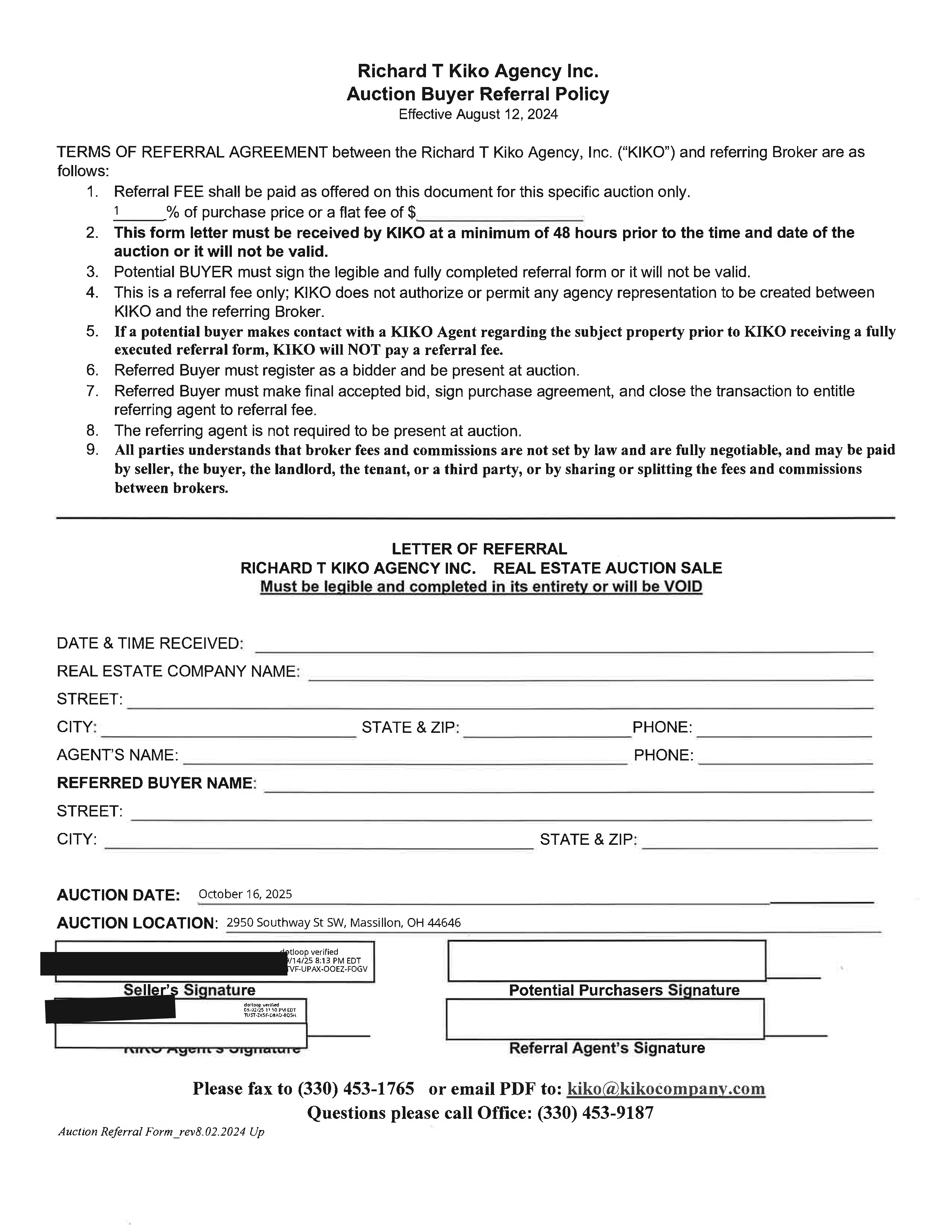 septic. Half year taxes are approx. $1,318. Stark County parcel number 4315517. Don’t miss this opportunity to buy at auction! Call auctioneer with any questions.