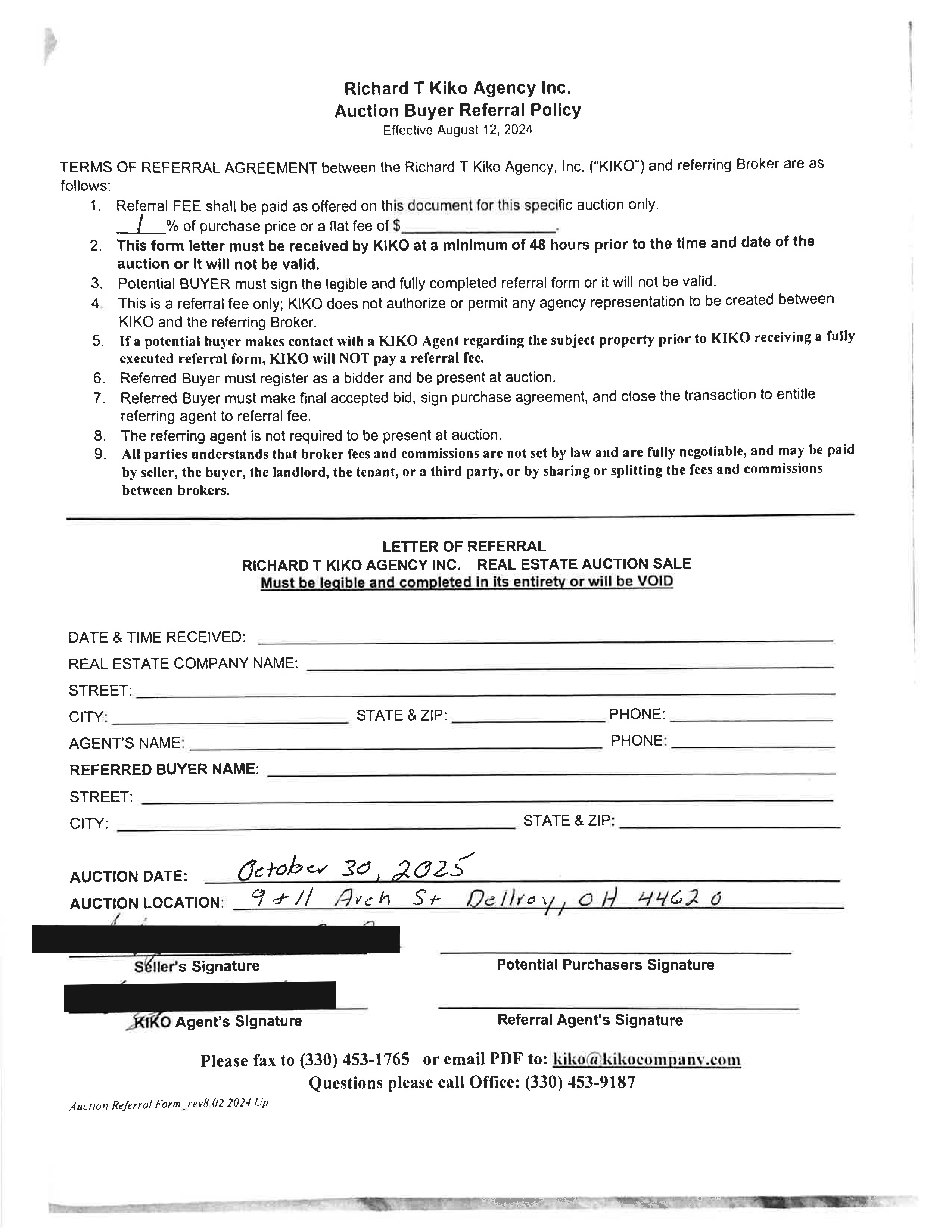 20% down auction day, balance due at closing. A 10% buyer’s premium will be added to the highest bid to establish the purchase price. Any desired inspections must be made prior to bidding. All information contained herein was derived from sources believed to be correct. Information is believed to be accurate but not guaranteed.